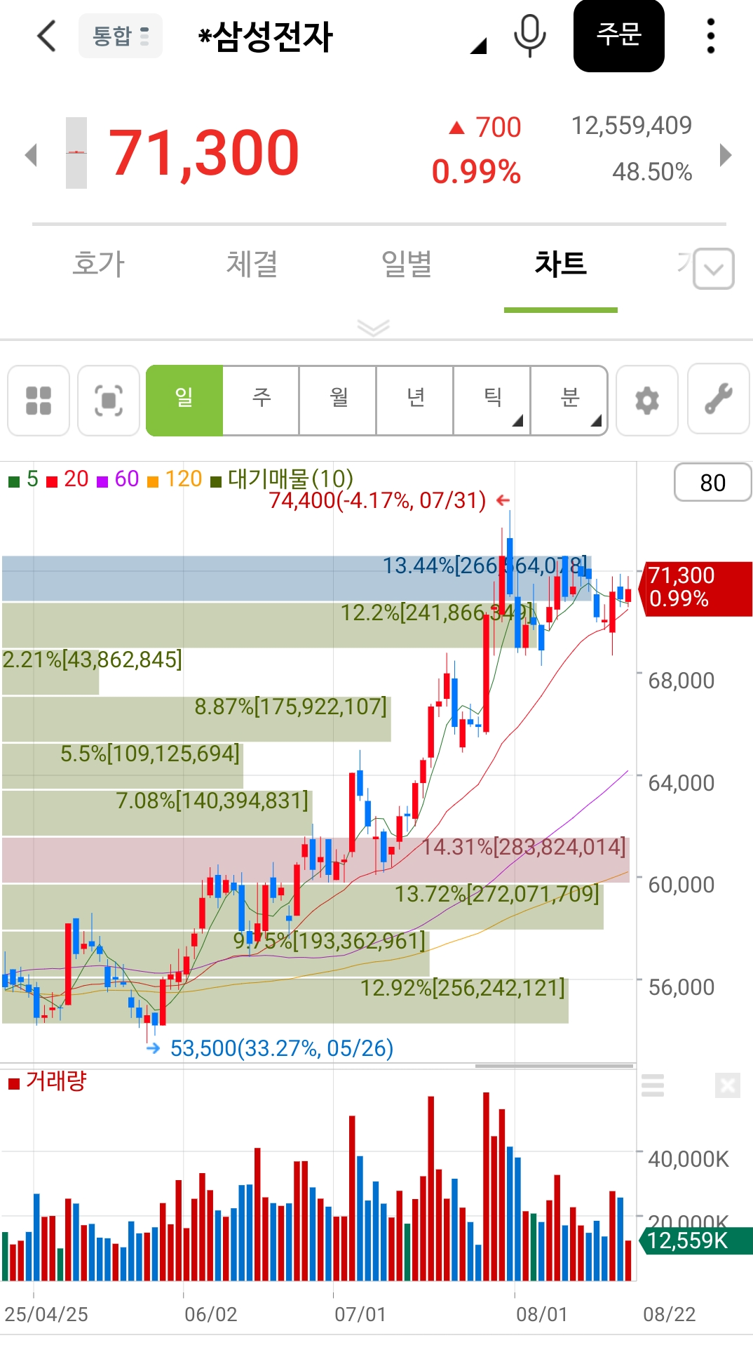 해결해야 할 큰 이슈들이 있지만, 7만원 이상 가격을 1달정도 계속 유지하고 있다.