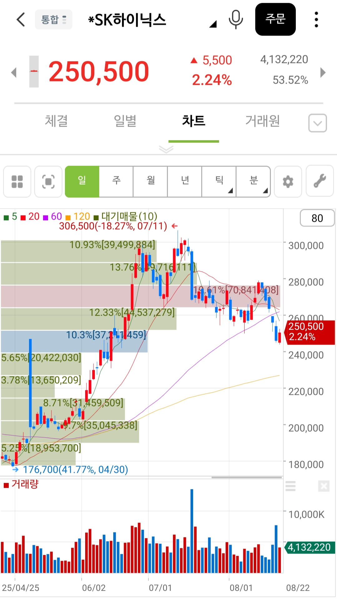 현재는 250500원으로 다소 떨어졌다.