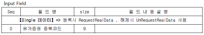 【Single 데이터】 => 등록시 RequestRealData, 해제시 UnRequestRealData 사용
