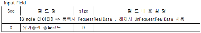 【Single 데이터】 => 등록시 RequestRealData , 해제시 UnRequestRealData 사용
