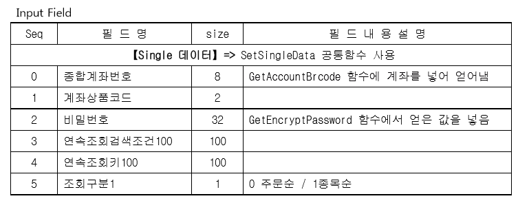 m_OrderListTranProc!!.SetSingleData(0, 4, " ") //연속조회키100